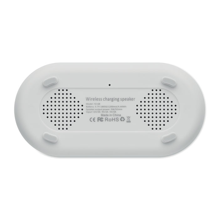 Altavoz 4 en 1 de carga inalámbrica de 15 W y 5 W en ABS con estación meteorológica y luz ambiental. Reloj despertador. Visualización de la hora y la temperatura. Batería Li-Iin integrada: 1200 mAh. Tiempo de reproducción aprox. 7 horas.