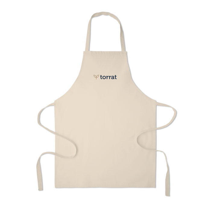 Delantal de algodón reciclado preconsumo de 180 gr/m² (70% algodón reciclado y 30% poliéster RPET) .Este artículo podría encoger después de la impresión.