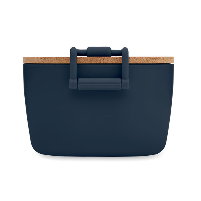 Fiambrera de PP con cierre de 2 pestañas laterales y tapa de bambú. Capacidad 700 ml.