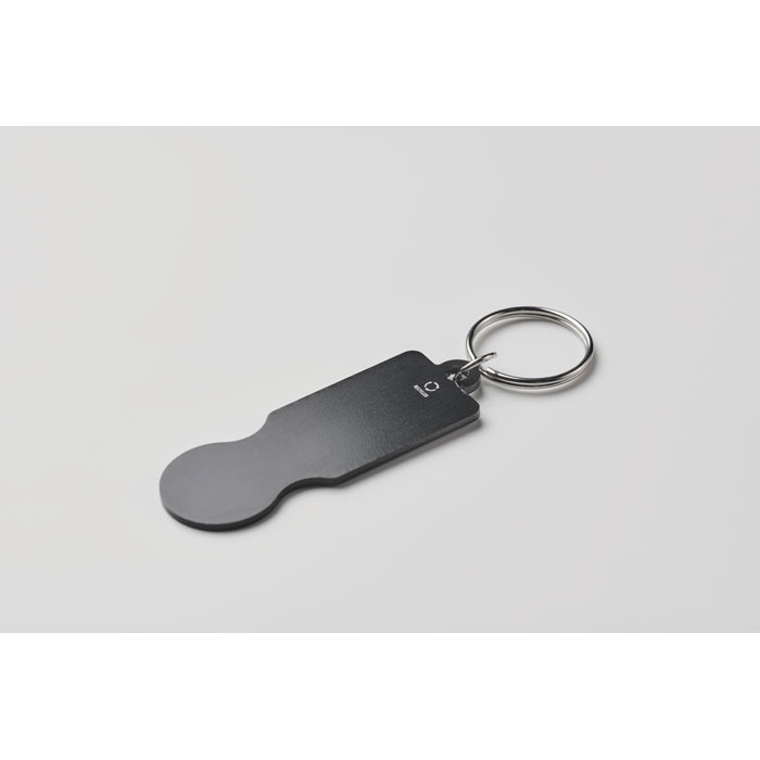 Llavero de aluminio reciclado con ficha para carro de la compra.